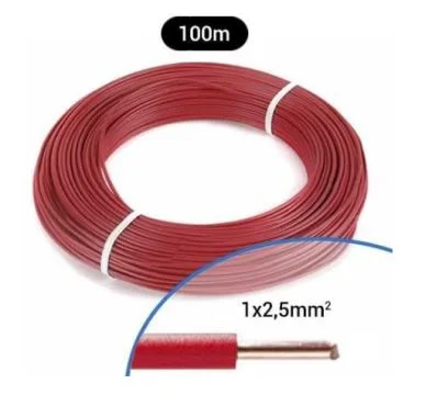Fil électrique rigide H07VU 2.5² rouge – Couronne de 100m